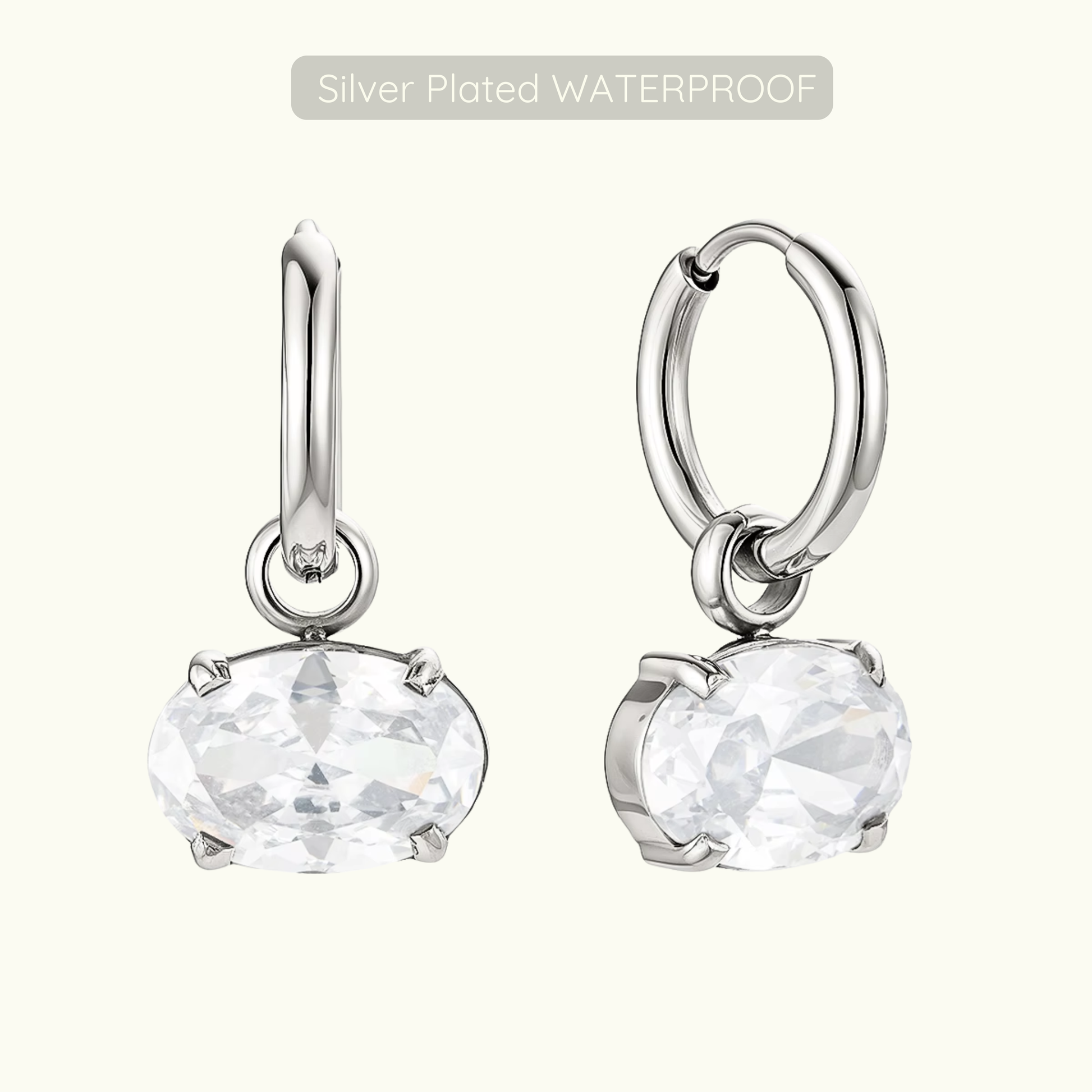 Holly Oval Stone Removeable Charm Hoops - Silver - Waterproof